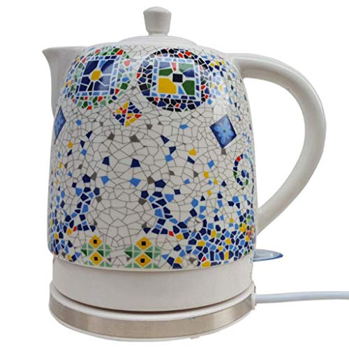 YSkettle lectrique Bouilloire en Cramique Bouilloire Traditionnel Blanc Mosaque Motif Bouillonne l'eau Rapide Th Caf Soupe D'avoine 1L