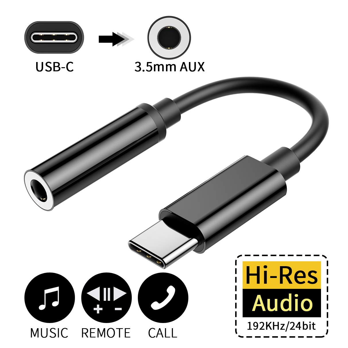 IMBCYL Adaptateur USB C Jack 3,5mm USB Type C 3,5mm Aux Cable de Prise Voiture Home stéréo écouteurs DAC Chipset Compatible avec iPad Pro,Huawei Mate 10 Pro/P20/P20 Pro/P30 Pro, Xiaomi,Samsung (Noir)