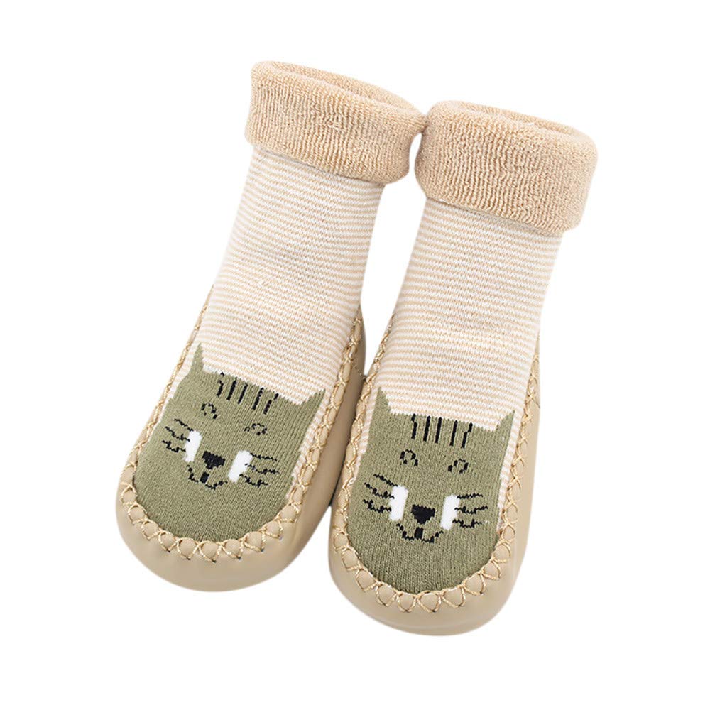 Robemon_Chaussettes Bébé Cadeaux Enfants Filles Garçons Automne Hiver Épaissi Anti-dérapantes Impression Animale Colle Seul Chaussures Hautes Jambes Plancher Chaussettes