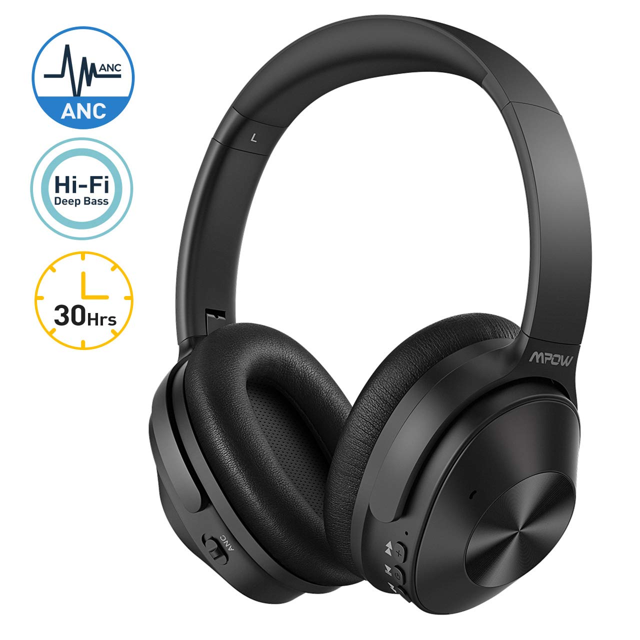 Mpow H12 Casque Bluetooth à Réduction de Bruit, Casque Bluetooth 5.0 Hybride Réduction du Bruit, Jusqu'à 30 Heures, Pliable avec Étui Portable,Stéréo Hi-FI ave Micro CVC 6.0 pour Téléphone/Tablettes